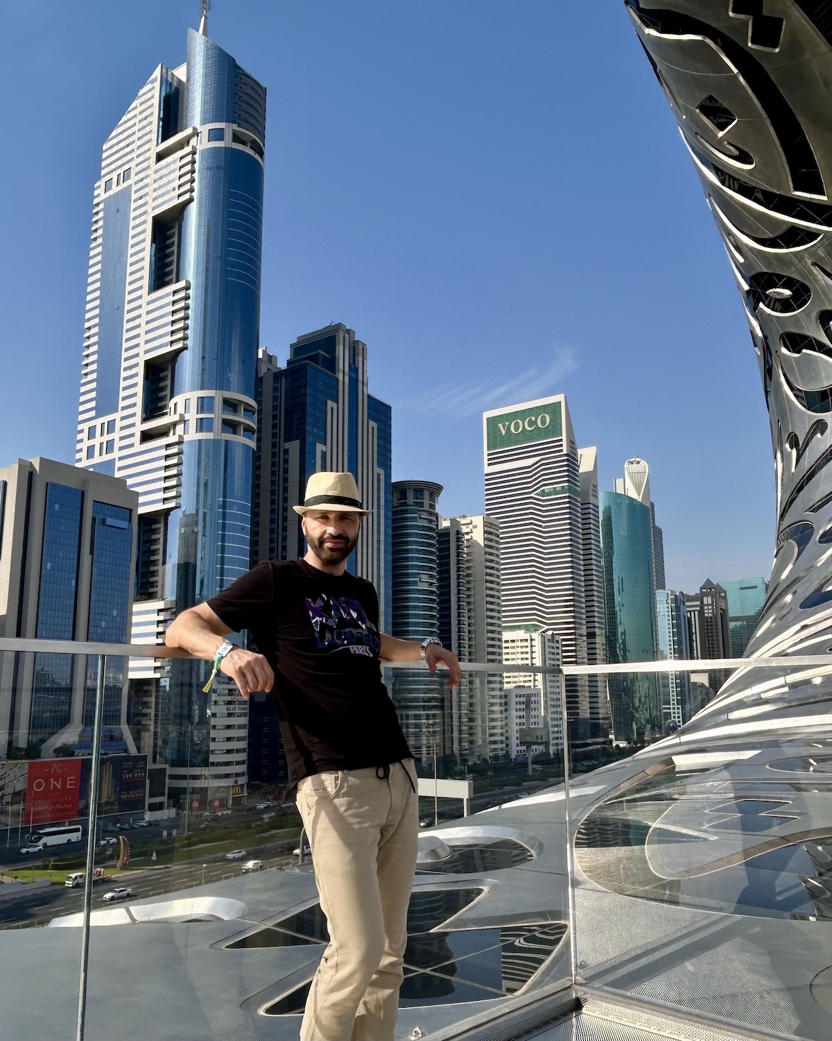 „Z Viedne sme leteli do Abu Dhabi, kde sme sa naladili na pokojné tempo dovolenky. Následne sme sa nalodili na výletnú loď Euribia, ktorá sa na niekoľko dní stala mojim domovom na mori. Prvou zastávkou bol Dubaj, kde som navštívil ikonický Dubai Frame, futuristické Múzeum budúcnosti aj rozprávkovo krásnu Miracle Garden. Dubaj je fascinujúce miesto, kde sa spája moderný svet s kreativitou a prírodou. Každý deň ma niečím prekvapil,“ prezradil Robo.